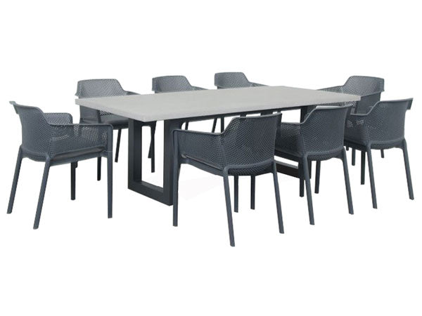 Manhattan -Portland 9pc Dining Set 2200 x 1000mm Table Gunmetal
